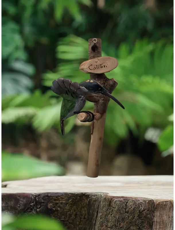 Ave tallada y pintada a mano por artesanos chilenos.